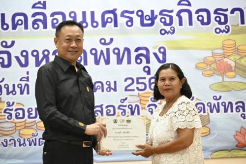 นายสุจินต์ วาจากิจ ผู้ว่าราชการจังหวัดพัทลุง เป็นประธานมหกรรมการออม 52 ปี ทุนชุมชนขับเคลื่อนเศรษฐกิจฐานราก โดยมี นายประโมทย์ ดำจวนลม พัฒนาการจังหวัดพัทลุง กล่าวต้อนรับและรายงานวัตถุประสงค์ของกิจกรรม เพื่อส่งเสริมการออมของประชาชน และเผยแพร่บทบาทของกองทุนและองค์กรการเงินชุมชนในการพัฒนาเศรษฐกิจฐานราก พร้อมทั้งสร้างเครือข่ายการเรียนรู้และความร่วมมือในการพัฒนาชุมชนให้เข้มแข็งและยั่งยืน