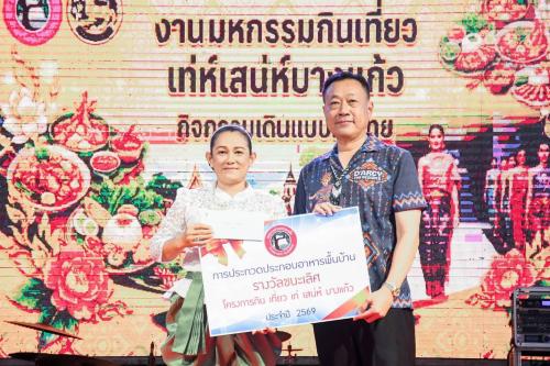 นางโสรญา ยอดราช พัฒนาการอำเภอบางแก้ว ร่วมพิธีเปิดและเดินแบบชุดไทยในมหกรรม “กิน เที่ยว เท่ห์ เสน่ห์บางแก้ว” ประจำปี 2569 ซึ่งจัดขึ้นระหว่างวันที่ 23–29 มีนาคม 2569