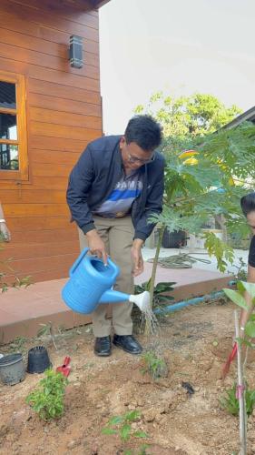 ทั้งนี้ นายประโมทย์ ดำจวนลม พัฒนาการจังหวัดพัทลุง พร้อมด้วยหัวหน้าส่วนราชการ ผู้นำท้องที่ ผู้นำท้องถิ่น ภาคีเครือข่ายการพัฒนาและผู้เข้าร่วมกิจกรรม ได้ร่วมกันลงมือปลูกผักสวนครัวหลากหลายชนิดบริเวณพื้นที่ว่างของบ้านพักนายอำเภอ อาทิเช่น พริก มะเขือ เคล สาระแน ผักชีฝรั่ง กระเพรา โหระพา เป็นต้น ซึ่งยังมีผู้เข้าร่วมกิจกรรม นำพืชผักมาร่วมปลูกในพื้นบริเวณบ้านนายอำเภอ เพื่อเป็นพื้นที่ต้นแบบและสร้างแรงบันดาลใจให้แก่ประชาชนในพื้นที่ ในการหันมาปลูกผักสวนครัวรั้วกินได้ ซึ่งนอกจากจะช่วยลดรายจ่ายในชีวิตประจำวันแล้ว ยังเป็นการสร้างความมั่นคงทางอาหารในระดับครัวเรือนและชุมชน ให้สามารถพึ่งพาตนเองได้ในทุกสภาวะวิกฤต ตามหลักปรัชญาของเศรษฐกิจพอเพียง